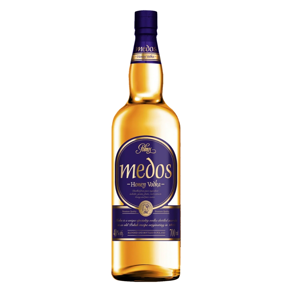 Medos Honey Vodka is a distinctive spirit with a heritage dating back to 1810. This smooth vodka is crafted from pure grains, fruits, root extracts, honey, and pristine water, offering a rich and refined flavor. ABV: 40%